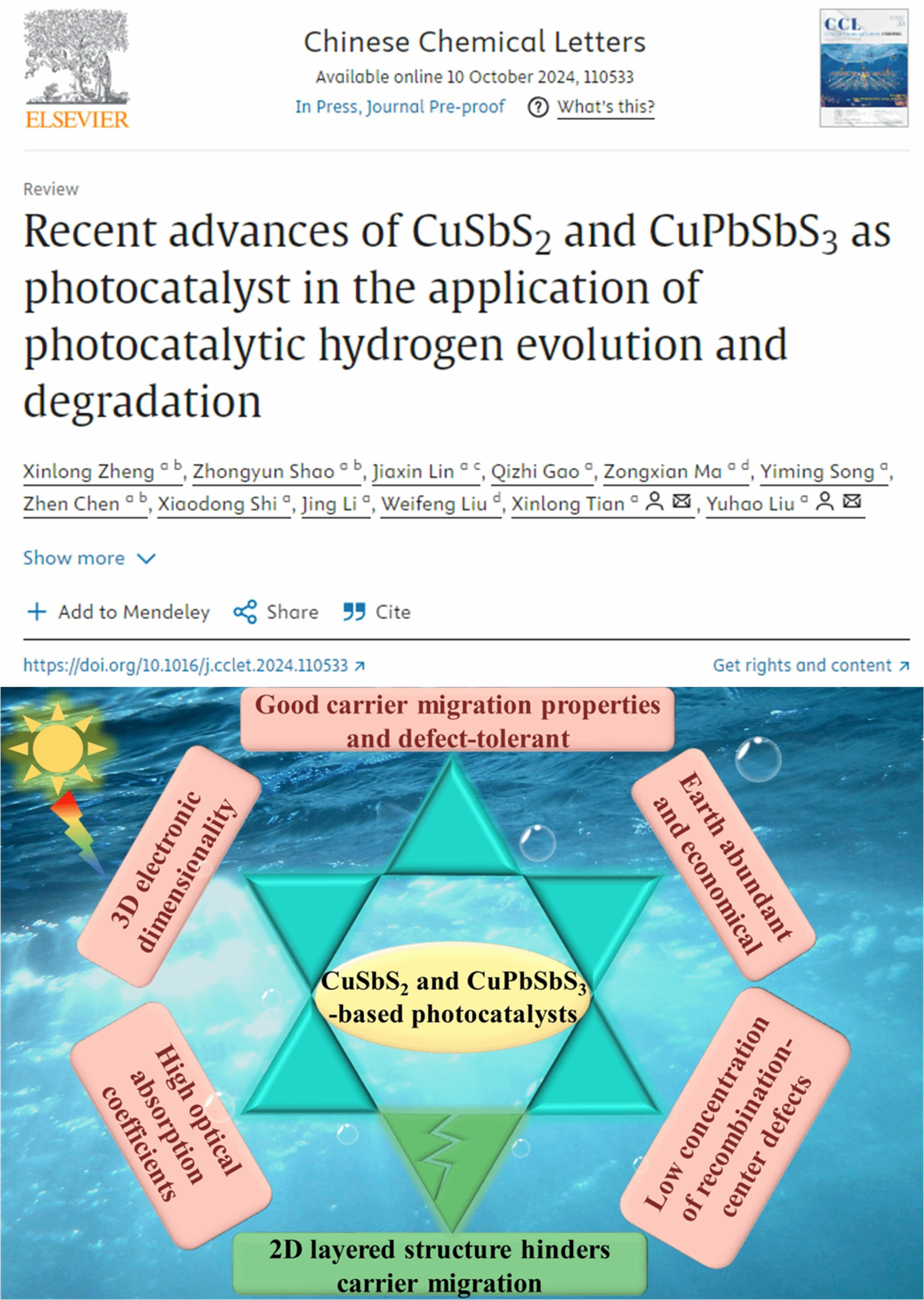 刘雨昊副教授所在团队在能源化学领域Top期刊《Chinese Chemical Letters》发表题为《Recent advances of CuSbS2 and CuPbSbS3 as photocatalyst in the application of photocatalytic hydrogen evolution and degradation》的综述论文。色情游戏