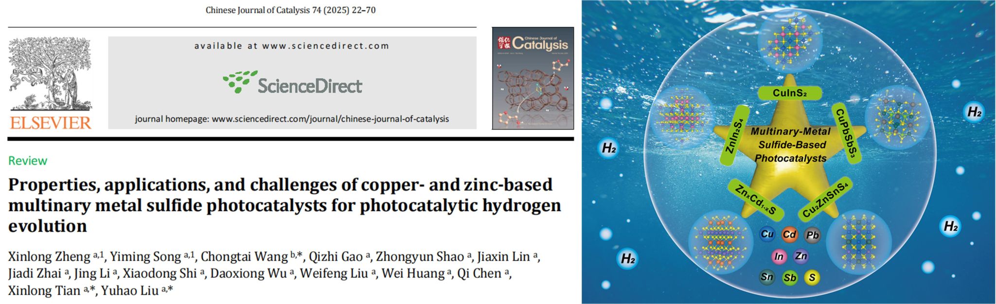 刘雨昊副教授在《Chinese Journal of Catalysis》发表题为《Properties, applications, and challenges of copper- and zinc-based multinary metal sulfide photocatalysts for photocatalytic hydrogen evolution》的综述论文。色情游戏