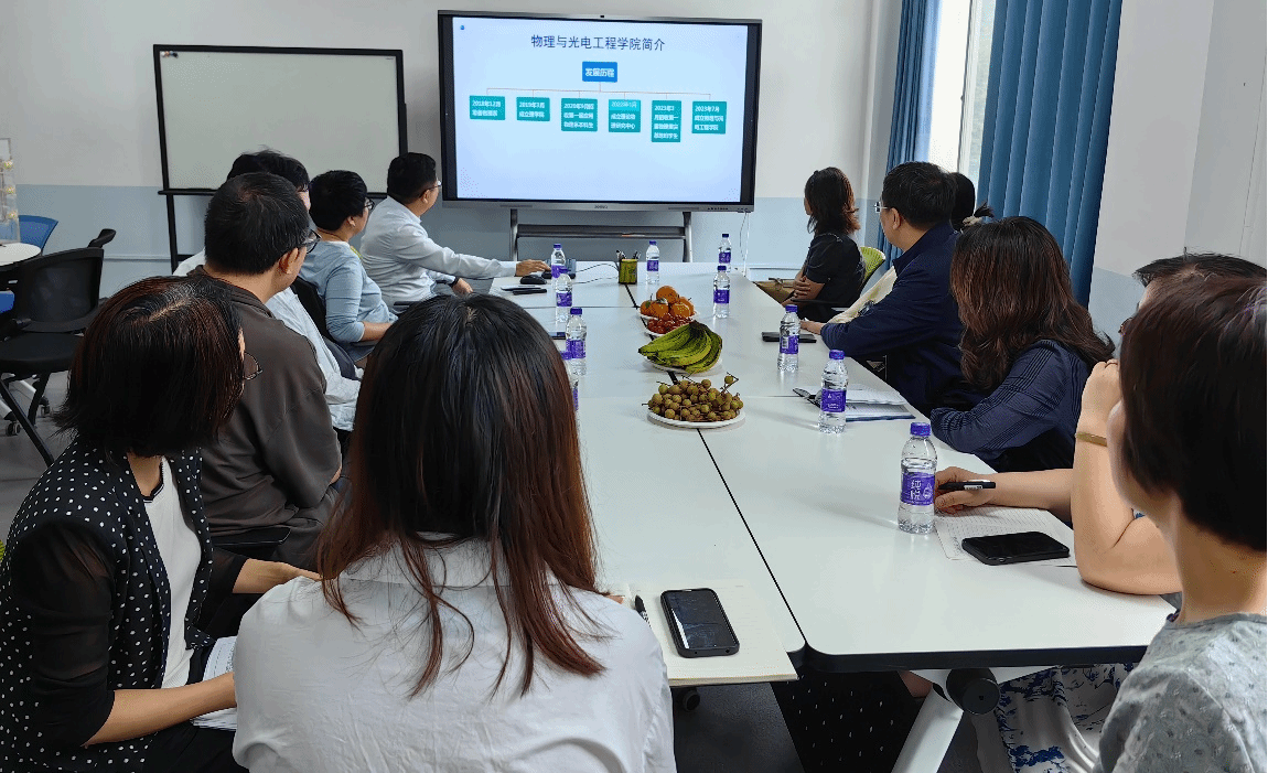庾名槐副院长详细介绍了学院的发展历程及学校的各项改革政策,陈文钦主任介绍了基础物理实验中心架构、本科实验教学情况等。随后双方就学生培养、实验教学改革等进行深入讨论,探索相互借鉴、共同提高的途径。并表示将进一步加强沟通交流,实现共同发展与进步。