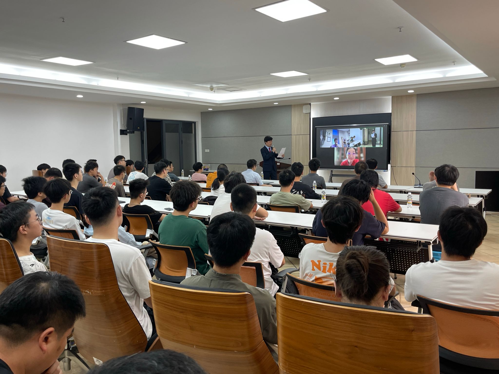 本次学术报告会采取线上线下结合的形式,吸引了校内外80余位师生线下参会、100余位国内外专家线上参会,其中包括中国科学院院士叶朝辉教授和来自中国科学院精密测量科学与技术创新研究院的柳晓军书记以及北京大学、清华大学、北京量子信息科学研究院等高校及研究单位的知名学者。