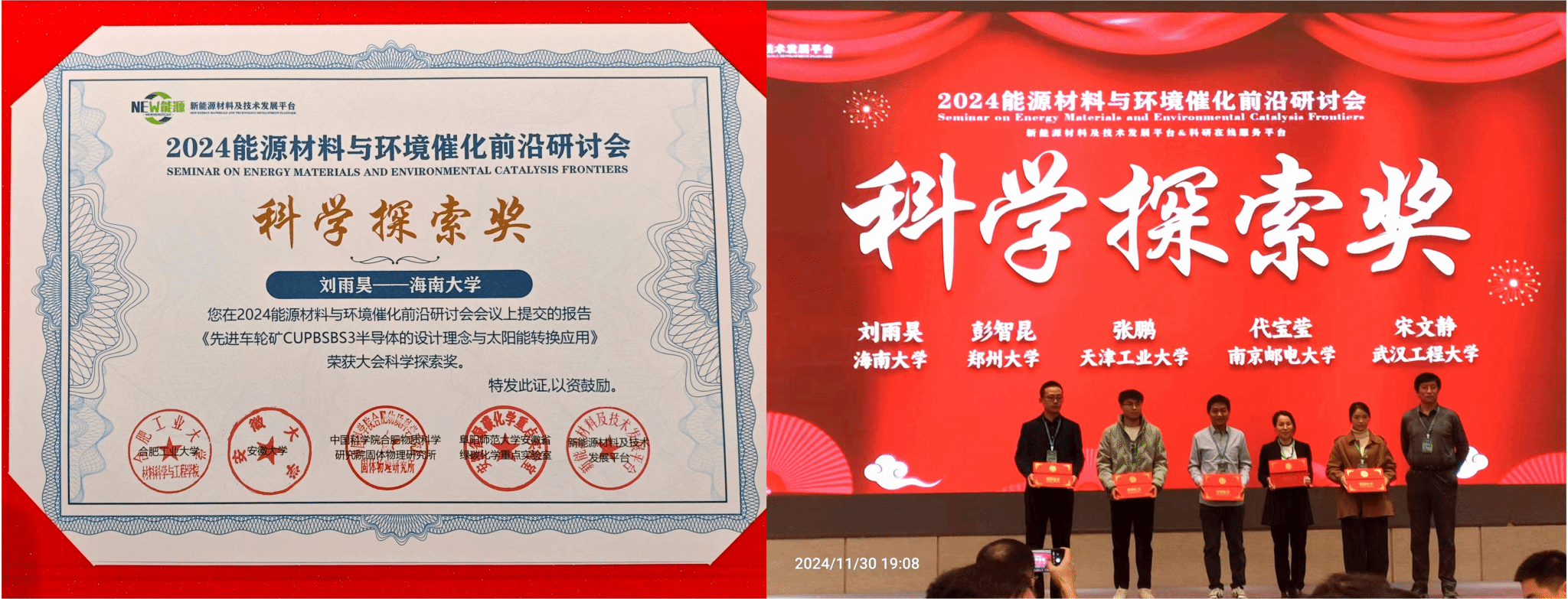 刘雨昊副教授在本次会议荣获“科学探索奖”。