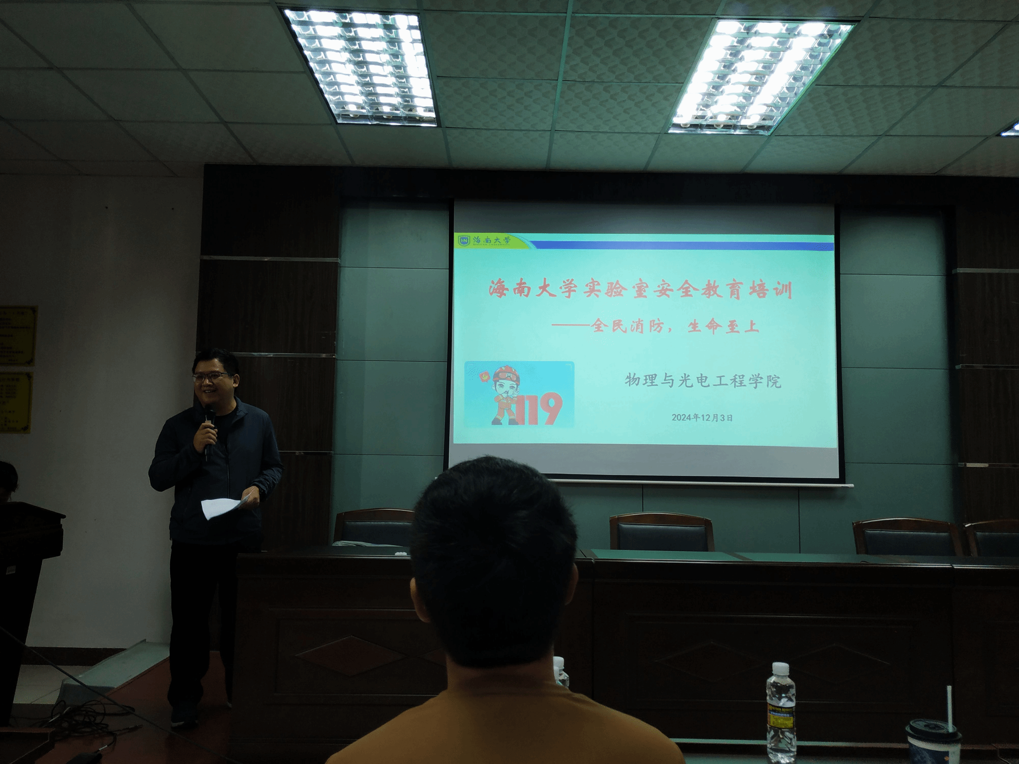 根据学校实验室设备管理处《关于组织开展实验室安全教育培训活动的通知》(海大实〔2024)50号)要求,学院党总支书记黄文强和副院长庾名槐进行了消防安全教育的相关部署。