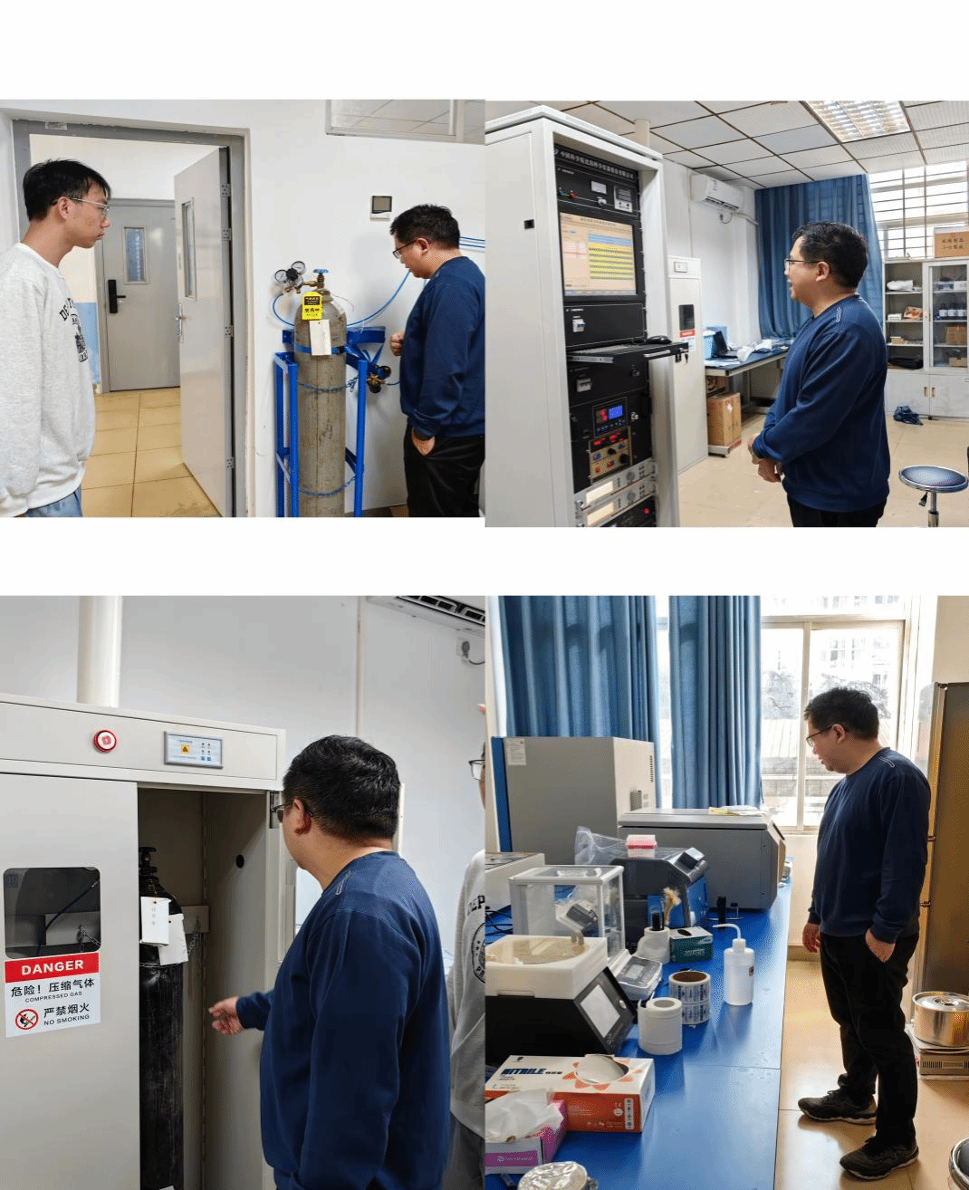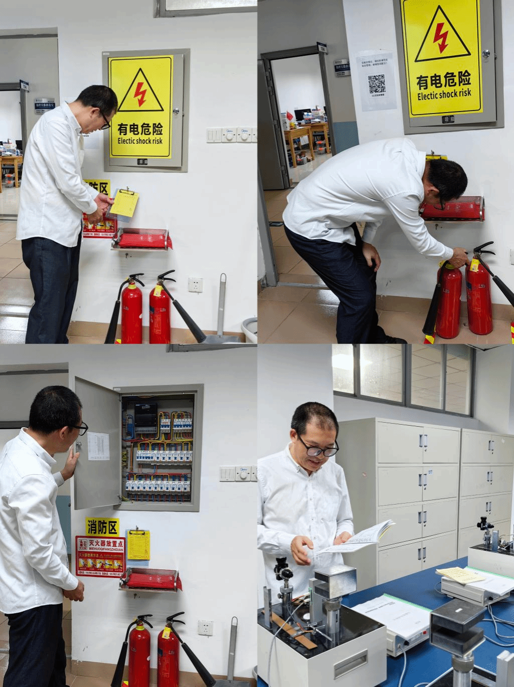 在庾名槐副院长、基础物理实验教学中心主任陈文钦带领下进行实验室安全月检查,实验室相关人员参加了本次检查工作。此次检查对实验室危险化学品使用安全、气瓶使用安全、高风险设备使用安全等进行了重点检查,对实验室设备安全、用电安全、消防安全等进行了综合检查。