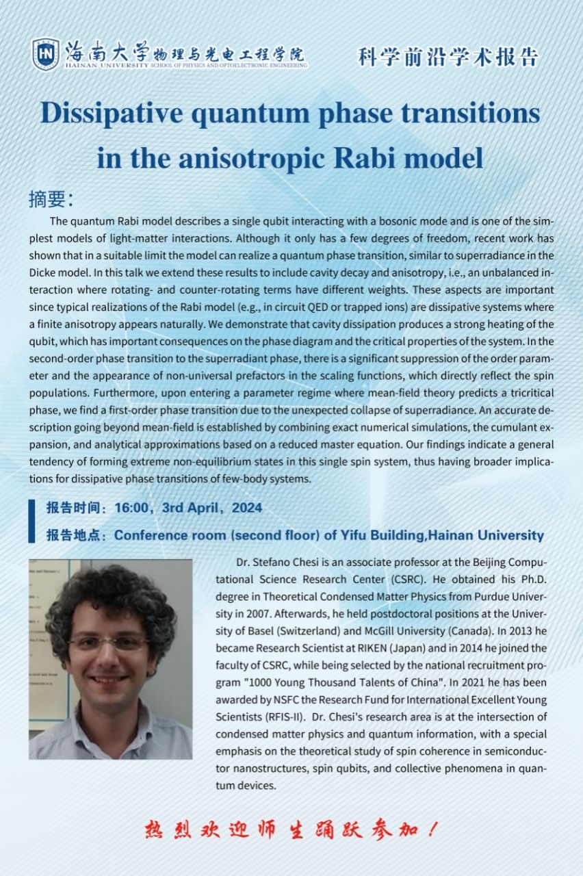 科学前沿学术报告(二十一):Dissipative quantum phase transitions in the anisotropic Rabi model