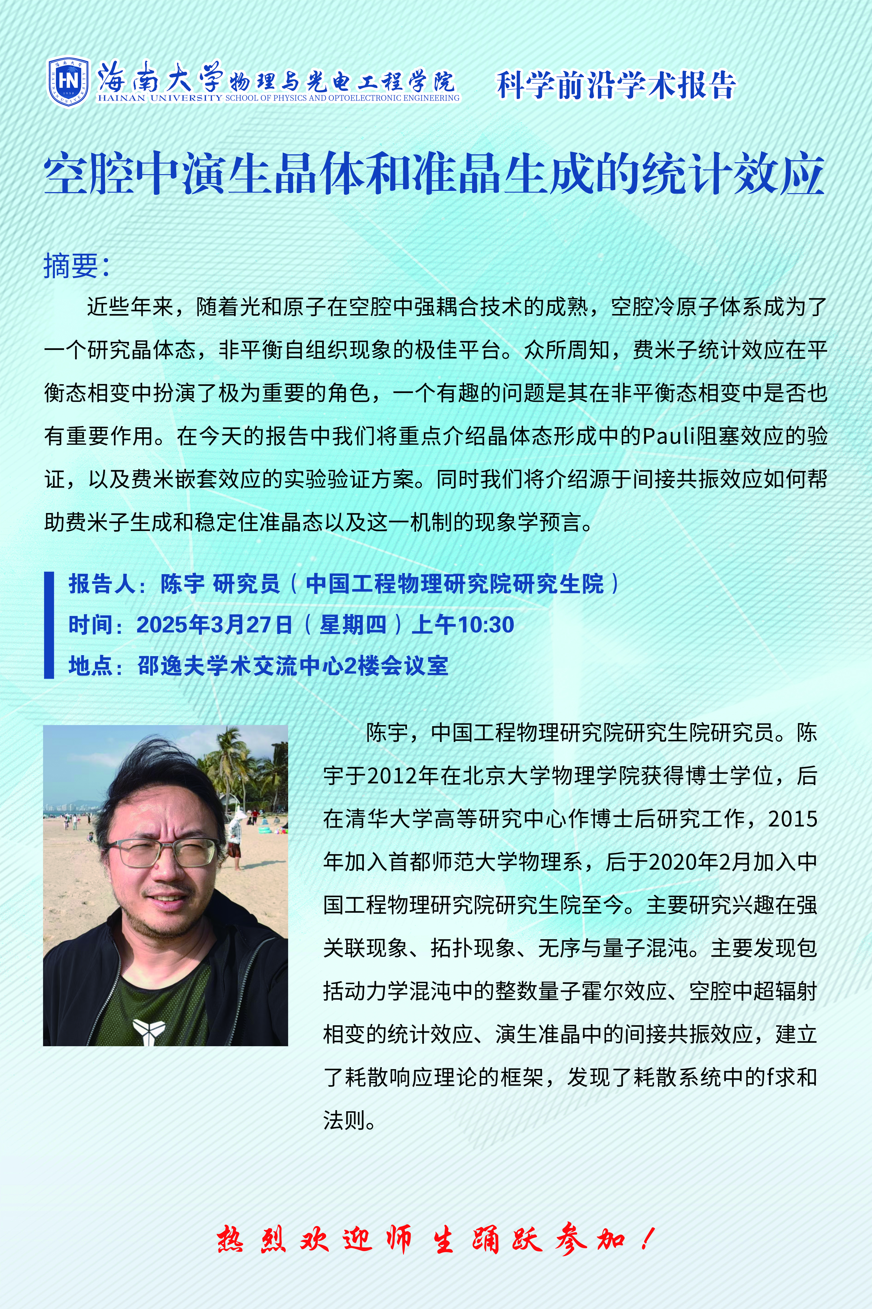 科学前沿学术报告(四十八):空腔中演生晶体和准晶生成的统计效应
